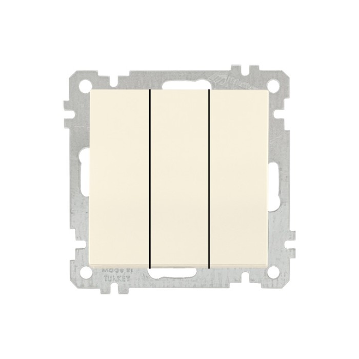 Выключатель 3-клав. (скрытый, без рамки, винт. зажим) кремовы, DARIA, MUTLUSAN