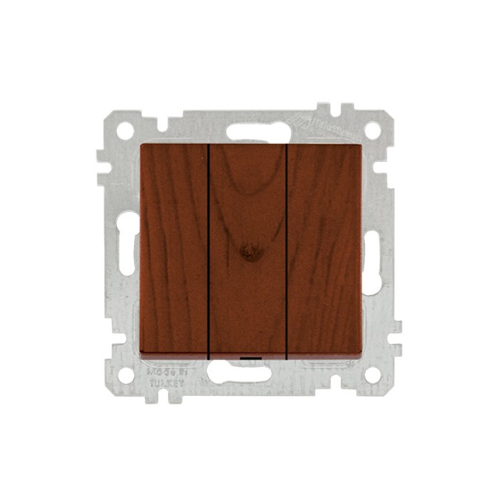 Выключатель 3-клав. (скрытый, без рамки, винт. зажим) орех, RITA, MUTLUSAN