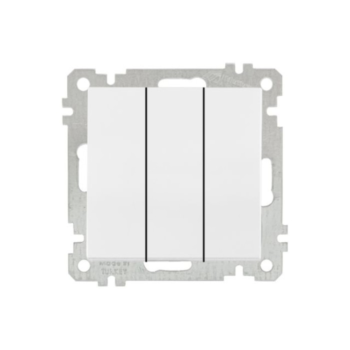 Выключатель 3-клав. (скрытый, винт. зажим) белый, ELITRA, MUTLUSAN