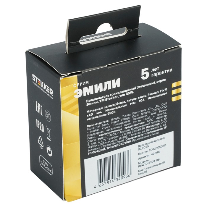 Выключатели трехклавишный STEKKER RSW10-5108-08, серия Эмили тип установки - скрытый, размер изделия 71*71*40мм., цвет кашемир, soft touch, материал изделия поликарбонат, латунь, сталь. Номинальное напряжение 250 , номин...