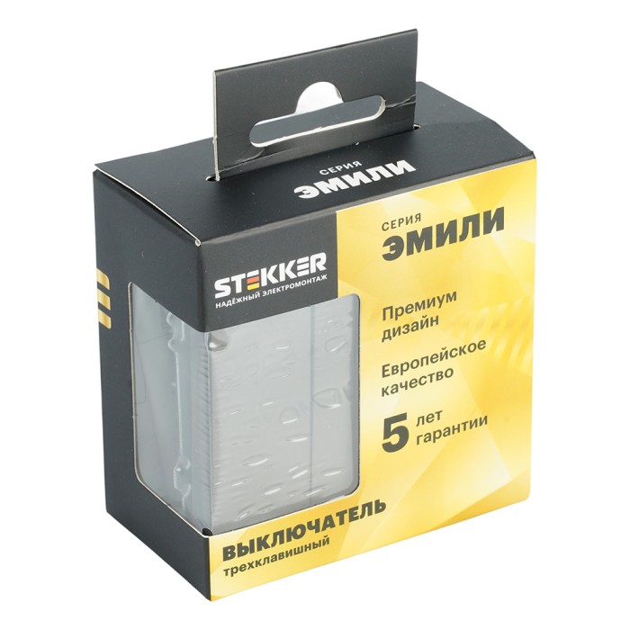 Выключатель 3-клавишный (механизм), STEKKER, 250В, 10А, серия Эмили, RSW10-5108-09, антрацит, soft touch