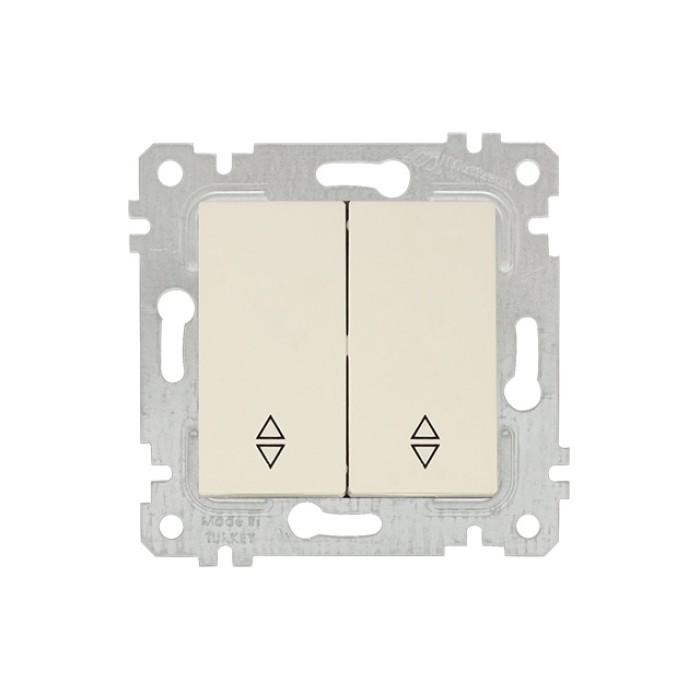 Выключатель проходной 2-клав. (скрытый, без рамки, пруж. зажим) кремовый, RITA, MUTLUSAN