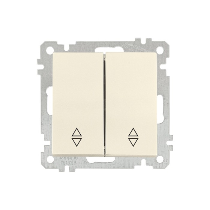 Выключатель проходной 2-клав. (скрытый, без рамки, винт. зажим) кремовый, DARIA, MUTLUSAN