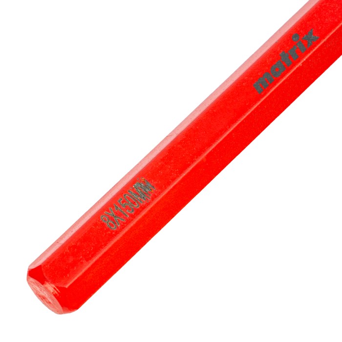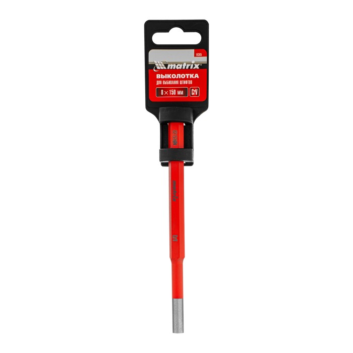 Выколотка Matrix 18305 из стали CrV, размером 8 х 150 мм, предназначена для выбивания штифтов, заглушек, заклепок, шпилек и других крепежных элементов. Используется в слесарном и столярном деле, а также для проведения ремонтных работ.ПреимуществаПрочность — выколотка из хромованадиевой стали выдерживает многократные ударные нагрузки.Высокий ресурс — рабочая часть дополнительно закалена до твердости 45-52 HRC, поэтому долго не изнашивается.Защита от разрушения — порошковое покрытие предотвращает образование коррозии.Продуманная шестигранная форма — выколотка не скатывается с наклонной поверхности и не выскальзывает из руки.Яркий красный цвет — инструмент не потеряется даже в условиях ограниченной видимости.