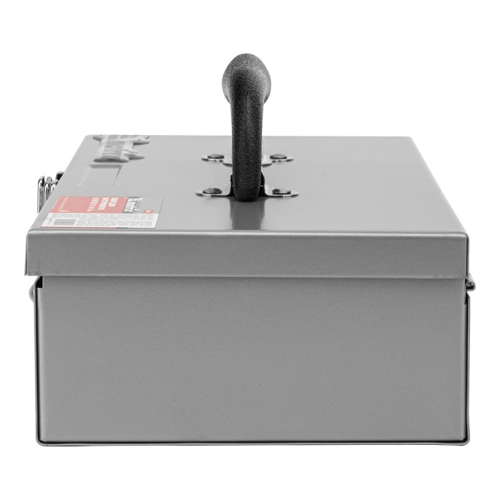 Металлический ящик Matrix 906055 размером 284 х 160 х 78 мм предназначен для хранения инструментов и хозяйственных мелочей. Позволяет освободить место в шкафу, кладовке или гараже. Бокс будет полезен автолюбителю или домашнему мастеру, а также рыбаку для размещения снастей.ПреимуществаНадежная защита содержимого — прочный металлический корпус устойчив к механическим воздействиям.Крепкий замок — находящиеся в ящике предметы не рассыпятся во время хранения или транспортировки.Комфортное перемещение — на крышке имеется удобная рукоятка.