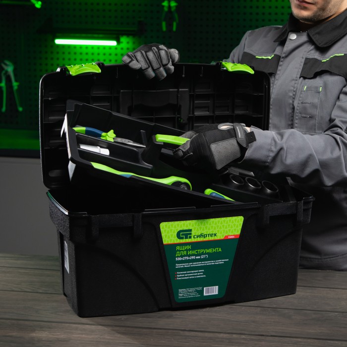 Ящик для инструмента, 530 х 275 х 290 мм, 21", пластик Сибртех