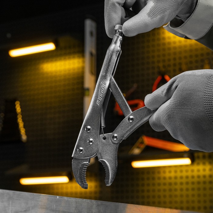 Ручной зажим Sparta 184305 длиной 250 мм, с полукруглым захватом, удерживает заготовки и детали в определенном положении, что облегчает их обработку или сварку. Инструмент используется в строительстве, во время проведени...