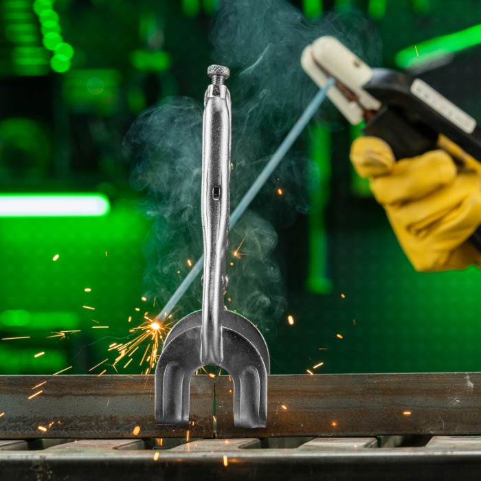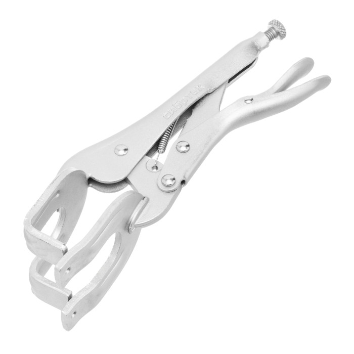 Двойной ручной зажим Сибртех 18429 длиной 225 мм используется для точечной фиксации деталей различной формы. Необходим во время проведения сварочных и слесарно-монтажных работ. Форма губок позволяет зажимать заготовки в двух точках одновременно, а запирающий механизм не дает им раскрыться.ПреимуществаДолговечность — стальной корпус инструмента устойчив к нагрузкам и износу.Антикоррозийная защита — никелевое покрытие предохраняет корпус от разрушения.Плавная регулировка ширины раствора губок — на верхней рукоятке имеется специальный винт.