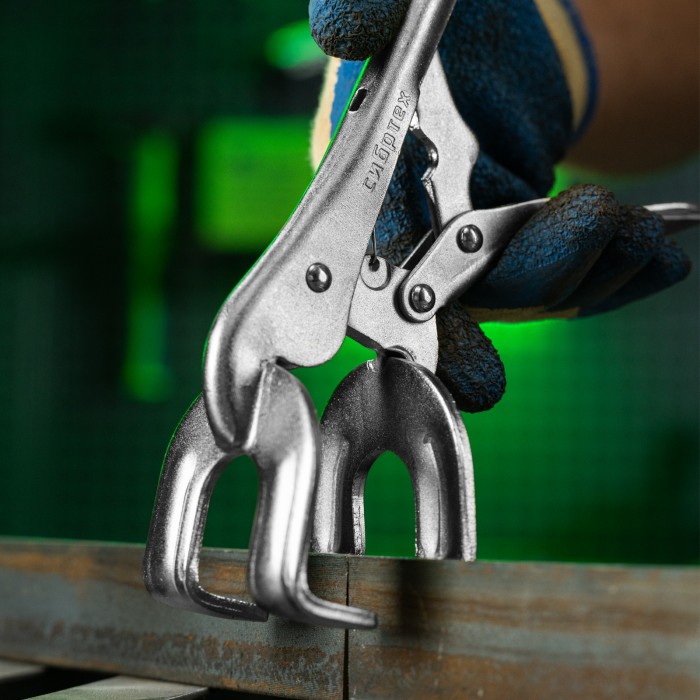 Зажим ручной, двойной, точечная фиксация, 225 мм Сибртех