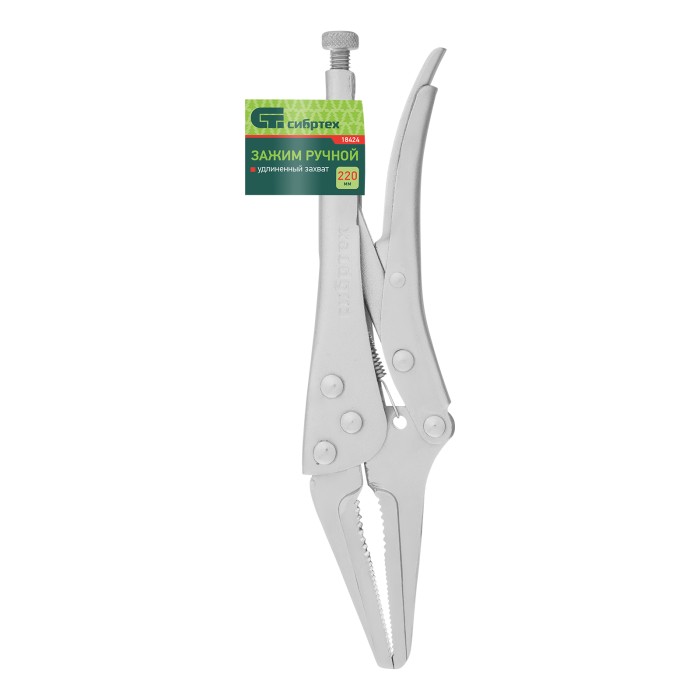 Зажим ручной Сибртех 18424 с удлиненным захватом, 220 мм, используется для проведения слесарных, столярных, монтажных, сварочных работ. Он удерживает разные по форме заготовки и детали, при этом руки мастера остаются свободными для дальнейших действий. Удлиненный захват обеспечивает надежную фиксацию. Инструмент пригодится на строительной площадке, во время ремонта, а также дома, в мастерской или гараже.ПреимуществаДолговечность — зажим изготовлен из стали и устойчив к механическому воздействию.Защита от коррозии — на корпус нанесено никелевое покрытие.Наличие винта — возможна плавная регулировки ширины захвата для удержания деталей разной формы.