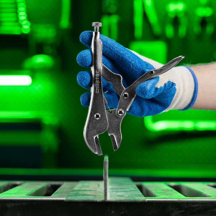 Усиленный ручной зажим Сибртех 18427 длиной 180 мм, с плоским захватом, используется для удержания различных предметов при проведении слесарно-монтажных и сварочных работ. Губки захватывают деталь, а фиксатор блокирует и...