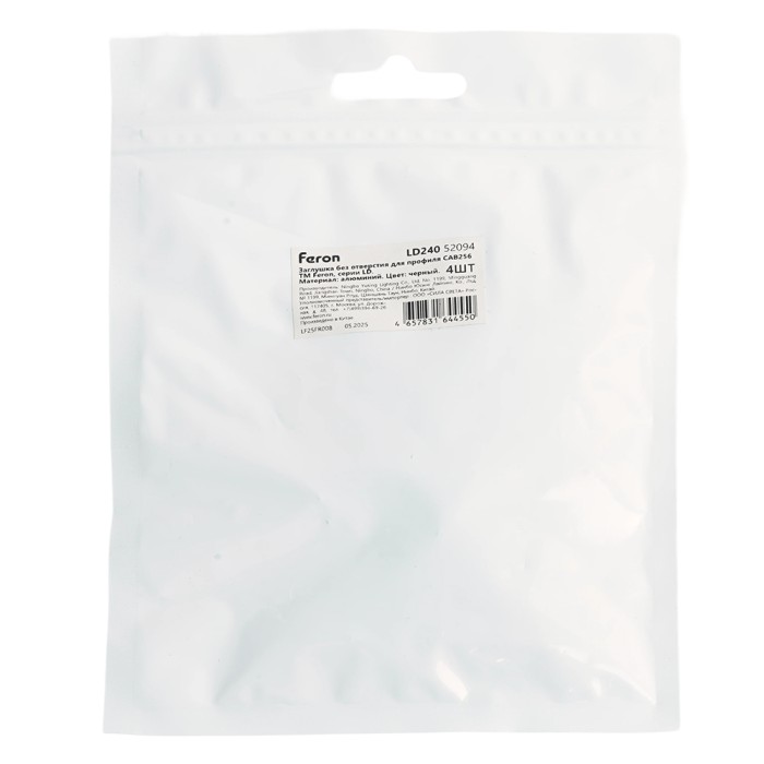 Заглушка для профиля FERON LD240 «без отверстия», цвет черный, в комплекте 4 шт, 39*2*39мм...