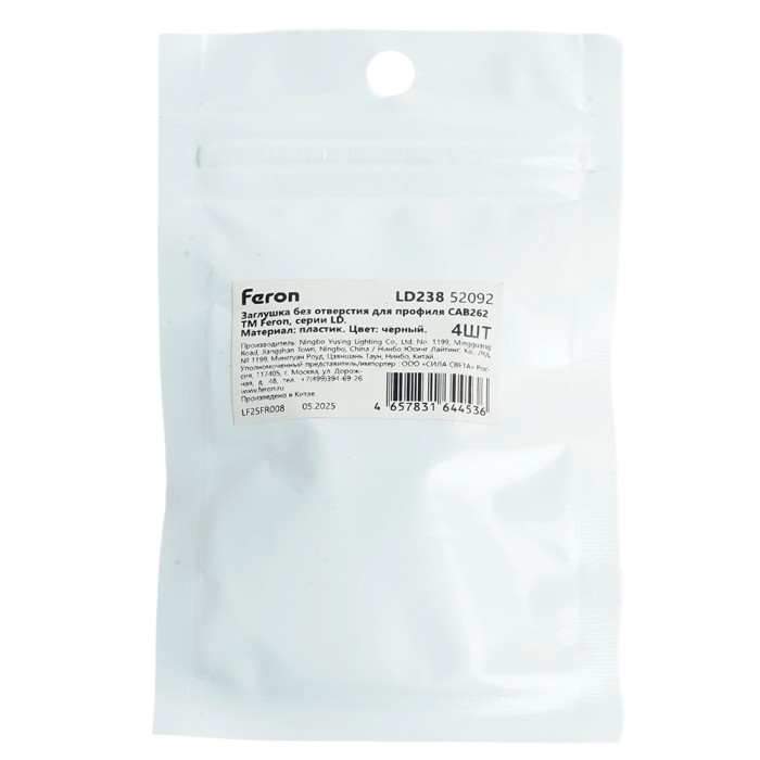 Заглушка для профиля FERON LD238 «без отверстия», цвет черный, в комплекте 4 шт, 14*5*9мм...