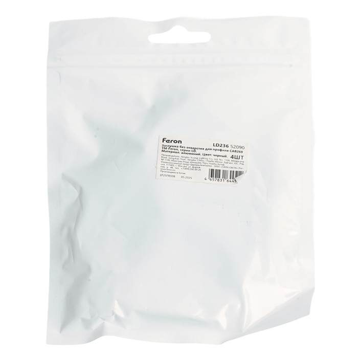 Заглушка для профиля FERON LD236 «без отверстия», цвет черный, в комплекте 4 шт, 50*2*50мм