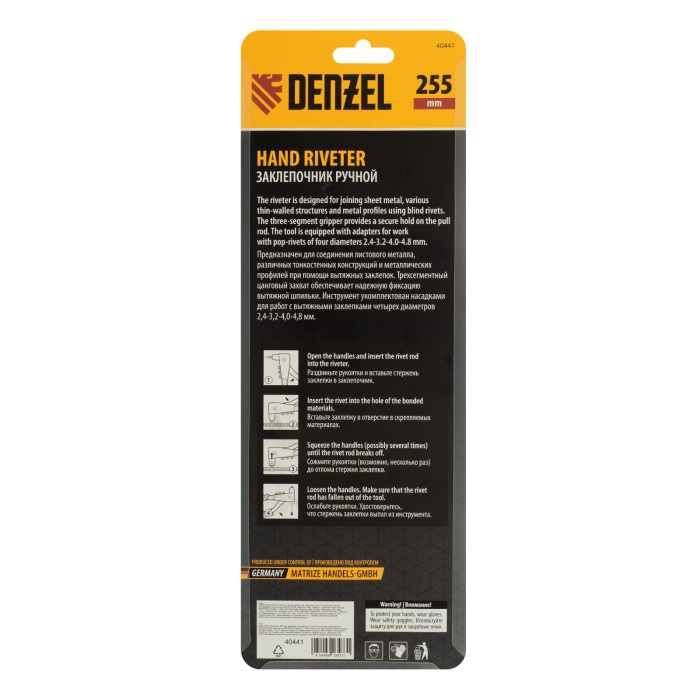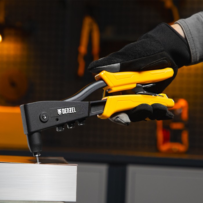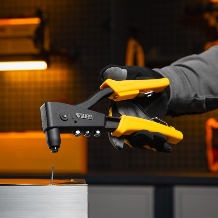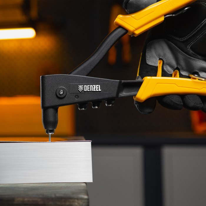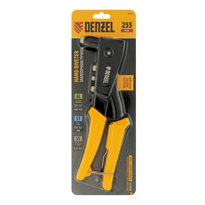 Заклепочник ручной, 255 мм, литой, усиленный, заклепки 2,4-3,2-4,0-4,8 мм Denzel
