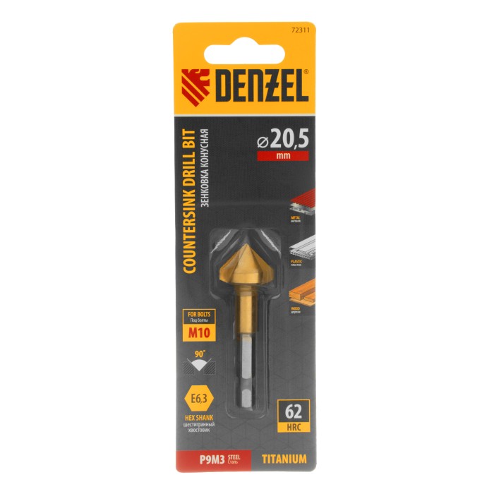 Зенковка конусная под М10, HSS, по металлу, 6-гранный хвостовик Denzel