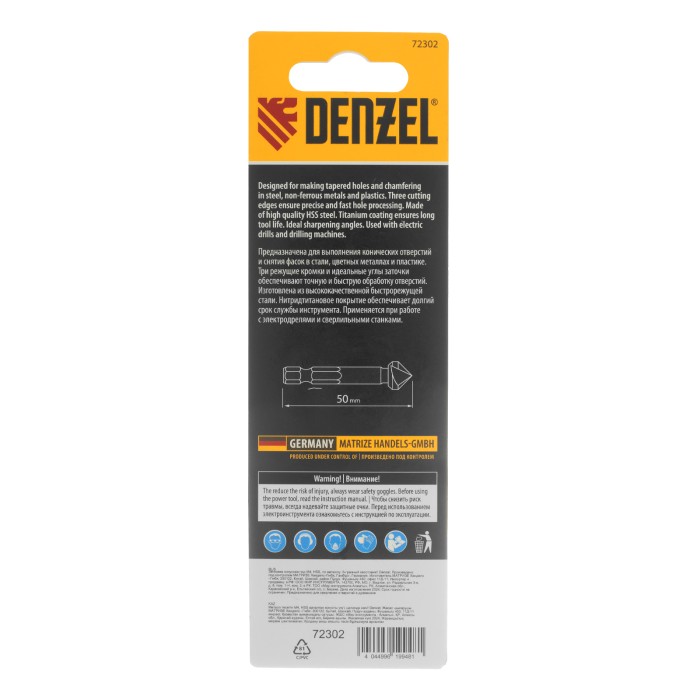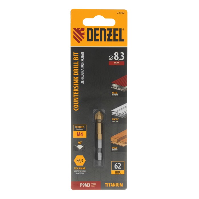 Зенковка конусная под М4, HSS, по металлу, 6-гранный хвостовик Denzel