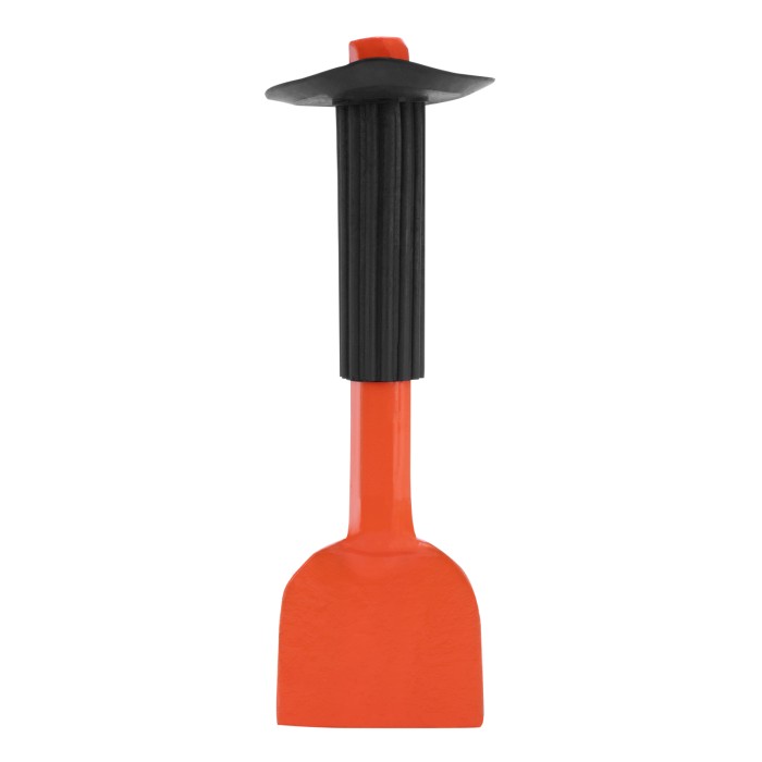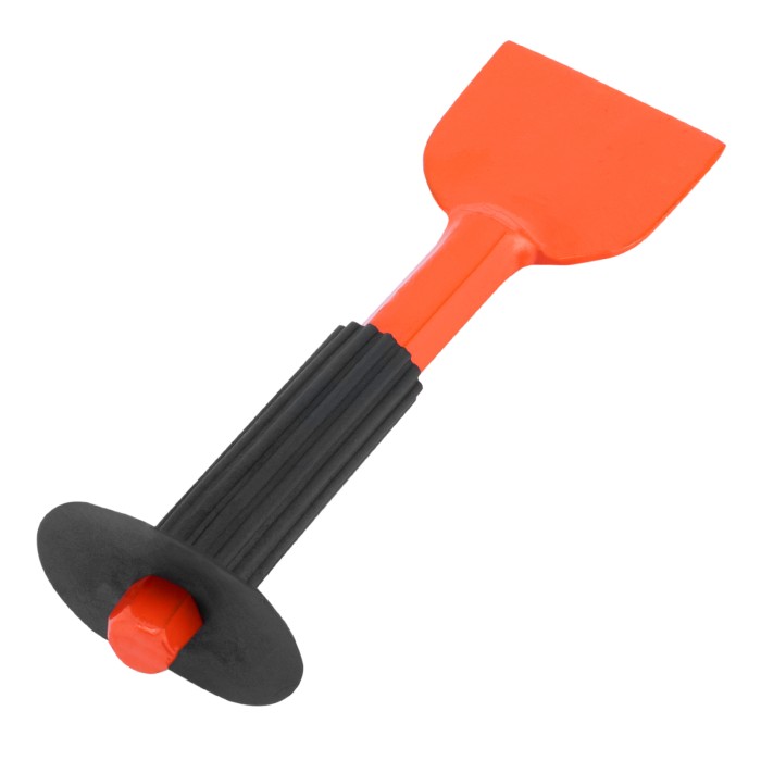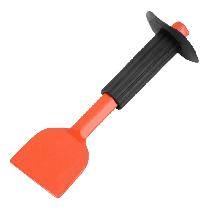 Зубило-конопатка с протектором Sparta 187495 размером 210 х 65 мм — ударно-режущий инструмент для скалывания с различных поверхностей керамической плитки и старой отделки, для очистки кирпича от кладочного раствора. Прим...